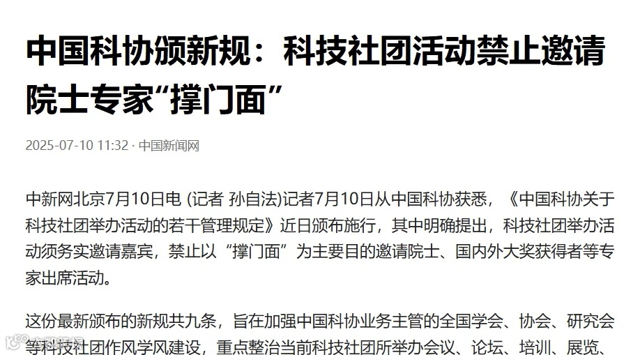 《中国科协关于科技社团举办活动的若干管理规定》近日颁布施行,旨在加强科技社团作风学风建设,整治不良风气,促进良好学术生态。