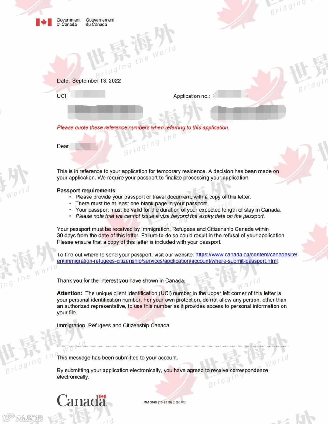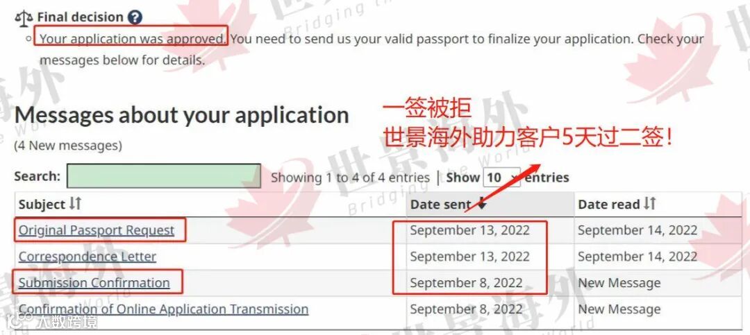 在世景团队的合力帮助下,R先生的第二次学签申请递交上去了,没想到的是,R先生的签证申请从众多申请中脱颖而出,不到6天时间得到获批,最终一纸签证下来,天降的好运让客户都感到又惊喜又意外。