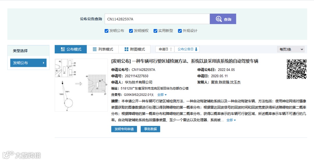 根据国家知识产权局专利,华为日前公开了一项自动驾驶相关专利。值得注意的是,该专利融合了摄像装置和雷达两种传感器。专利摘要显示,具体实现方法包括:使用神经网络对摄像装置获取的图像数据进行处理以得到障碍物的第一概率分布;根据雷达回波信号的回波时间和回波宽度获得所述障碍物的第二概率分布;根据障碍物的第一概率分布和障碍物的第二概率分布,获得以概率表示的车辆可行驶区域,所述概率表示车辆不可通行的概率。根据专利文件,该自动驾驶辅助系统包括摄像装置、至少一个雷达以及处理器,系统被配置可实现方法的技术方案,自动驾驶车辆包括上述的自动驾驶辅助系统。本申请的方法融合了摄像装置和雷达这两种传感器,并将基于两种传感器所获得障碍物分布信息进行融合。融合后的车辆可行驶区域以概率的形式进行表示,从而可以全面地得到车辆周围的障碍物信息,避免了因为摄像装置的盲区或者雷达的探测范围所导致的探测盲区。