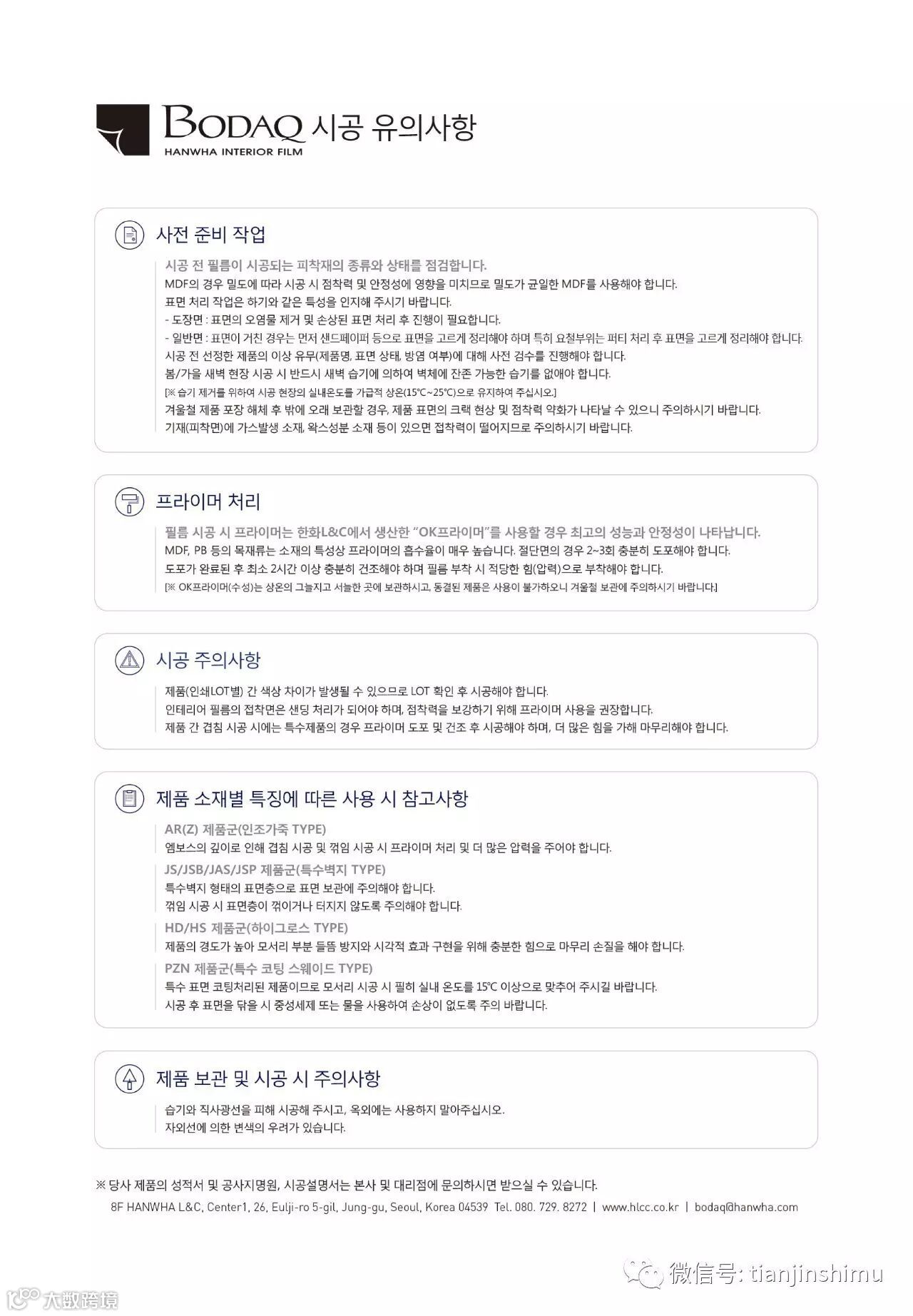 韩华L&C 天津地区总代理。销售品牌有韩华、LG、3M、 现代、三星、 蔷薇、 韩阳、 BS等。实力雄厚,重信用、守合同、保证产品质量,以多品种经营特色和薄利多销的原则,赢得了广大客户的信任提供良好服务。