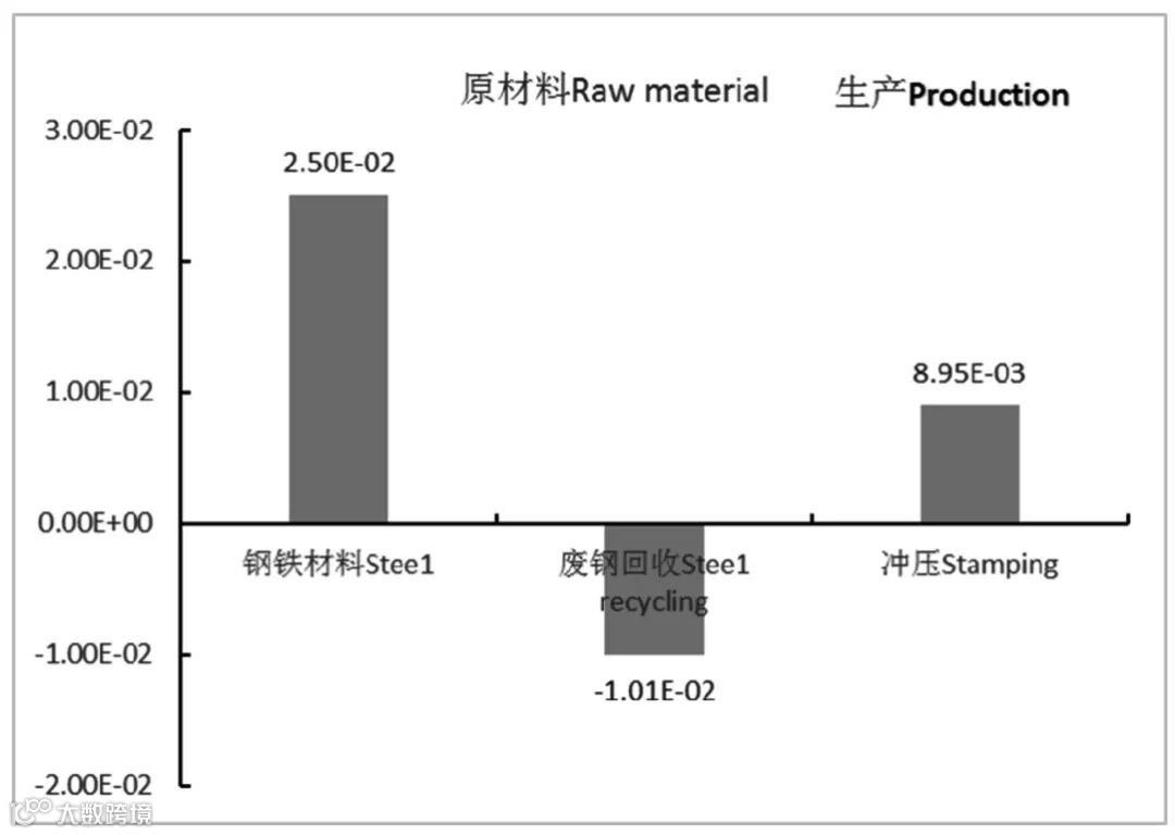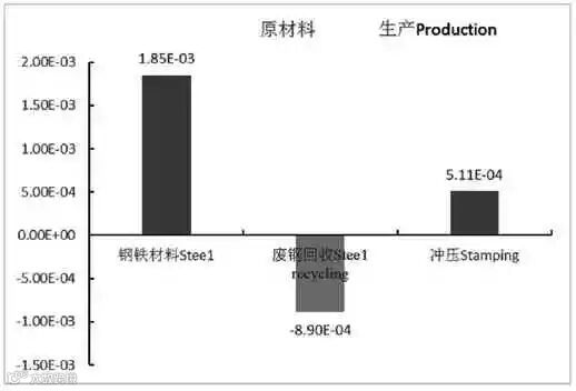 原材料的获取阶段中钢铁材料所产生环境影响较大,可以通过减少原材料,增加环保材料的使用等方式降低原材料的获取阶段的环境影响;对于零部件的生产阶段所产生的环境影响,通过建立能源管理系统实现生产阶段的节能减排。