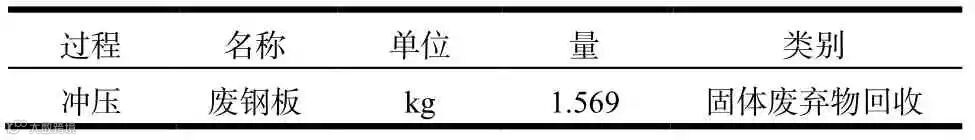 左前翼子板生产阶段主要为钢板冲压过程,冲压过程所使用的能源为电力。如表2 所示,单个左前翼子板的生产阶段共消耗0.643 kWh 的电,此数据通过冲压线总电量除以冲压线体总产量得到。