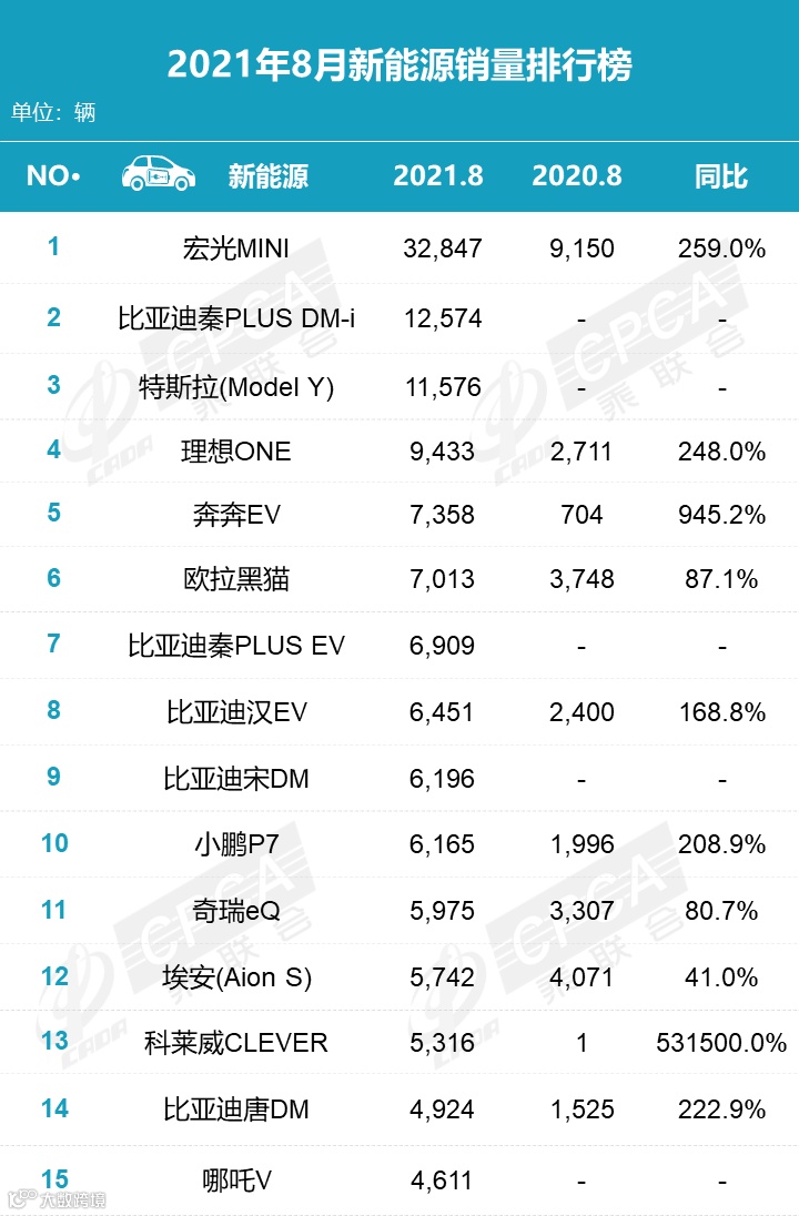 3)普混:8月普通混合动力乘用车批发3.89万辆,同比去年8月增长37%,环比7月下滑14%。8月日系总体受到芯片短缺影响表现较大,产销锐减。