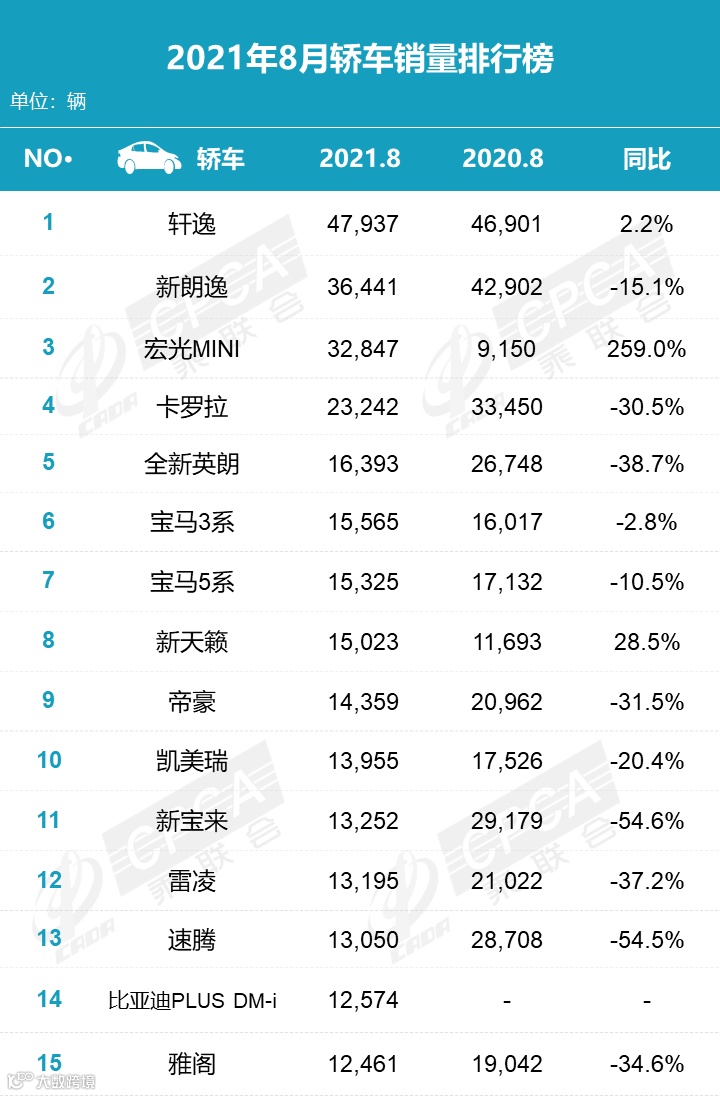 日系车(四家,比上月少一家):四家企业8月份市占率为18.6%,较上月下降了3.5个百分点。