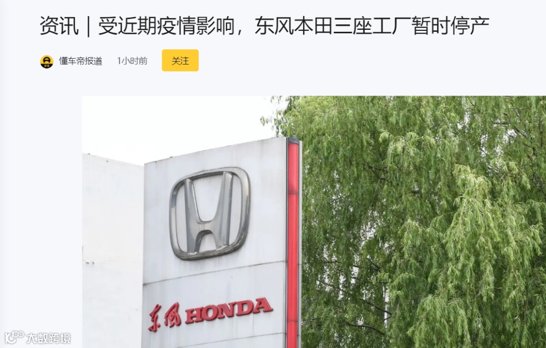 对此,东风本田官方向相关媒体确认了这一消息。据了解,东风本田的三座工厂合计年产能为72万辆,主要生产CR-V、思域、XR-V等热销车型,也是东风本田销量支撑的主要车型,此次停产预计对产销量造成一定程度的影响。