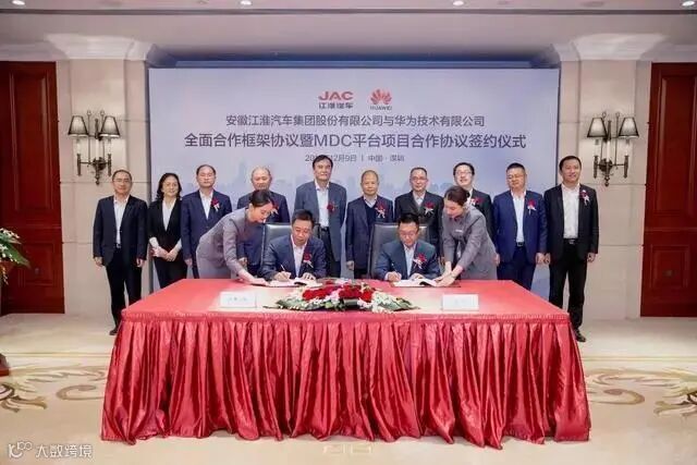 电动知家了解到,早在2019年,江淮汽车就与华为技术有限公司(简称“华为”)正式签署全面合作框架协议暨MDC平台项目合作协议。