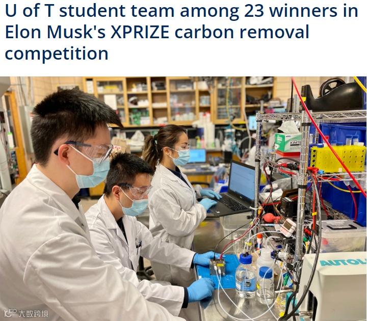 AU of T工程团队是今年埃隆·马斯克(Elon Musk)学生XPRIZE除碳比赛的获胜者之一。