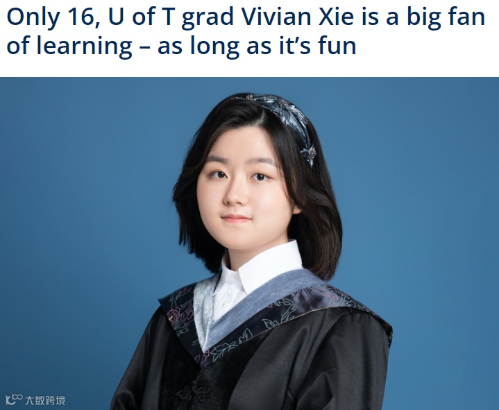 16岁的Vivian(Qiao) Xie是自1979年以来从多伦多大学St. George校区、多伦多大学士嘉堡校区和多伦多大学密西沙加校区毕业的最年轻的学生。