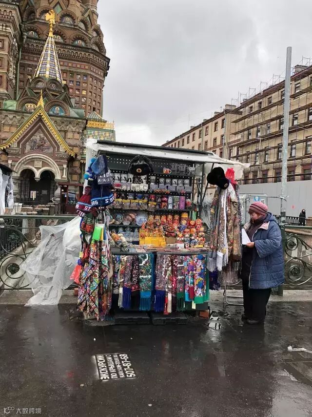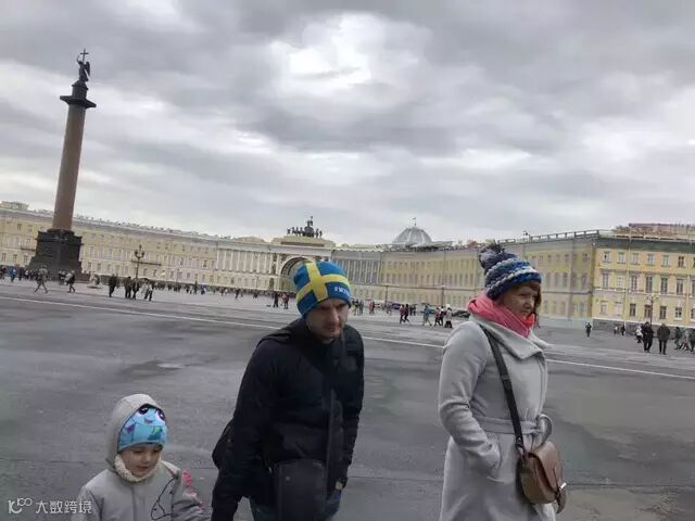 路上人烟稀少,偶尔有行人擦肩而过。俄罗斯是天生富有艺术气质的民族,伤感是俄国人天性的一部分,他们深爱的文学和艺术中,都深深渗透着一种无需言表的哀伤。沿途所遇,大部分俄罗斯人都有一双冷冰冰如涅瓦河水般深不见底的碧蓝色大眼睛,给人一种冷淡疏离的距离感,就像是弥漫在四周连日不断的阴郁天气,大概需要等到许久以后才能渐渐暖和起来。