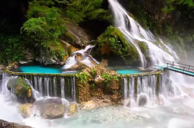 这里山势险峻,花木俊秀,溪水湍急且清澈透明,大大小小瀑布分布其间:瀑布温泉、百瀑谷、彩虹瀑布......