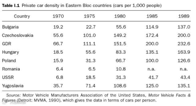 比如当时苏联在1989年的千人汽车保有量只有43.4辆,而当时收入水平类似(比苏联高20%)的葡萄牙在1990年则是185辆。今天的中国与解体前的苏联收入水平类似,千人汽车保有量是125辆。