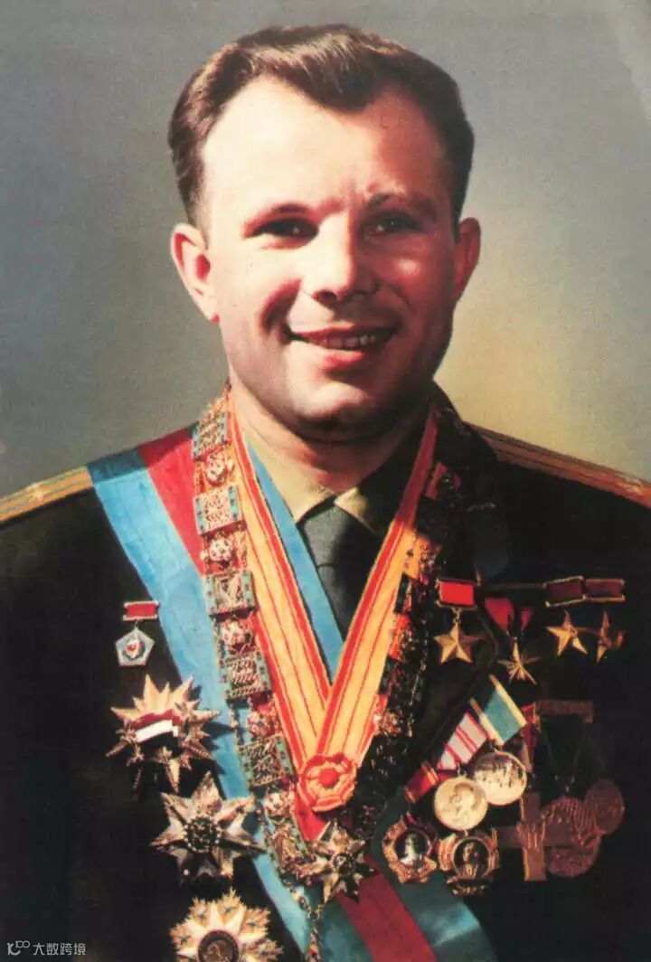 人类历史上第一名宇航员:尤里·阿列克谢耶维奇·加加林(Ю́рий Алексе́евич Гага́рин/Yuri Alekseyevich Gagarin),1961年4月12日。
