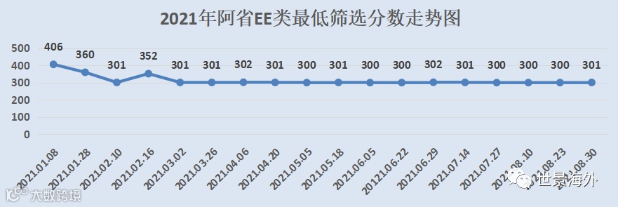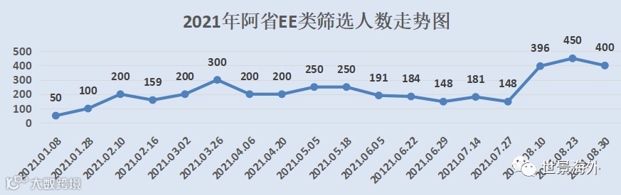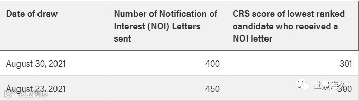 2021年08月30日阿省EE技术移民通过EE通道邀请了400人,最低分301分。