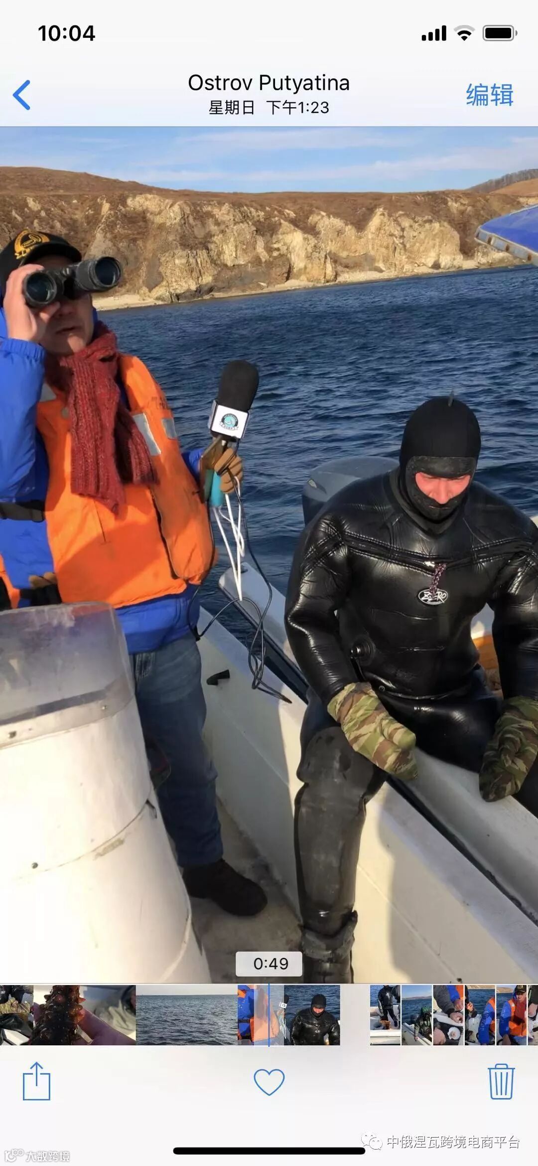 (五)最难忘的海上相遇,维克多接收到信息,打捞船只已经开始返航,我们接下来与萨沙从岛子再次出发在大海间与其他船只和潜水员相遇。见证奇迹的时刻就要来临啦!画面还是以视频截图的方式为大家呈现,后期专业纪录片会在涅瓦官网上上传,望大家多多关注!