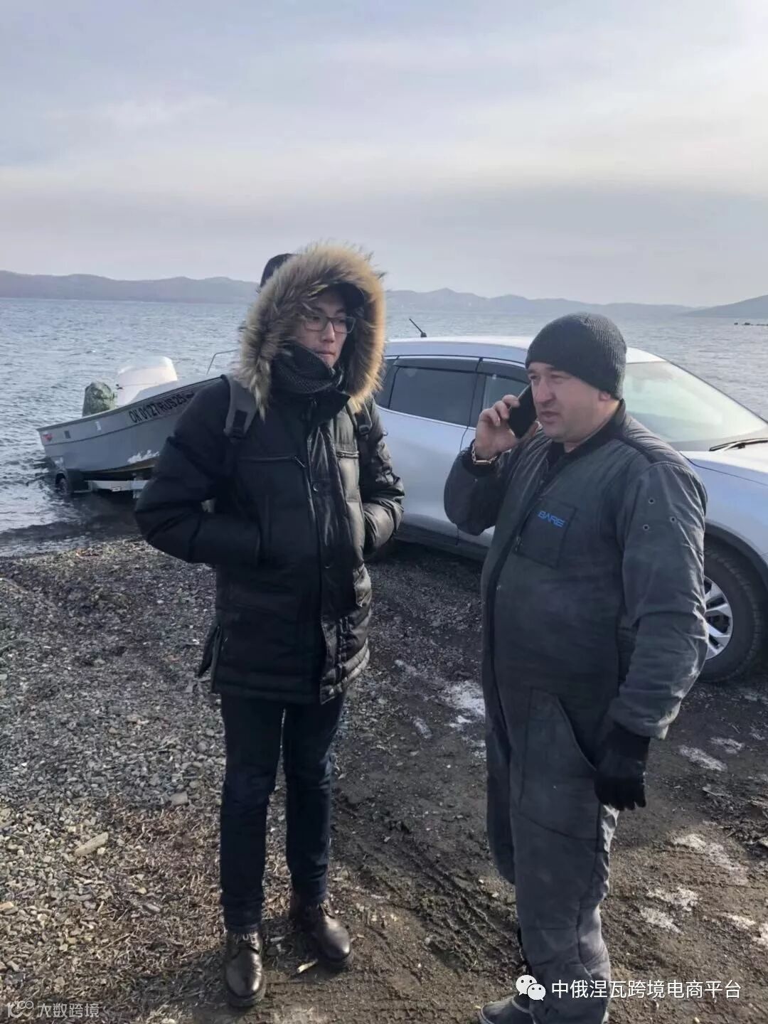 (二)与俄方合作伙伴碰面,通过四个多小时的路程,我们一行人到达乡镇汽车站。与维克多和他的夫人碰面一起去海边乘船前往布迦基诺岛深海打捞俄罗斯野生海参。