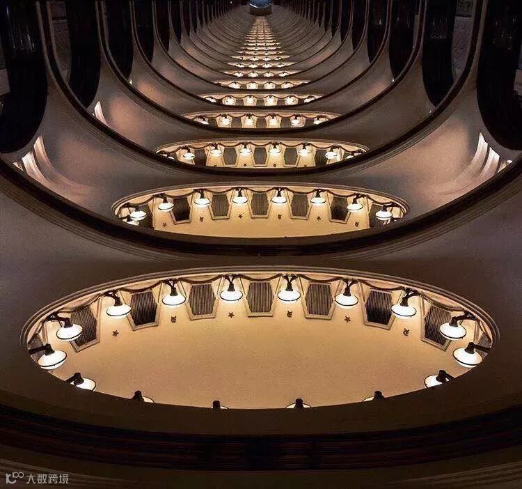 大厅两侧的每座大理石拱门都镶着不锈钢,一盏盏照明灯围成圆形,嵌在穹顶。灯光反打在地面中央的红色大理石“通道”上,在典雅下也流淌着一丝现代。