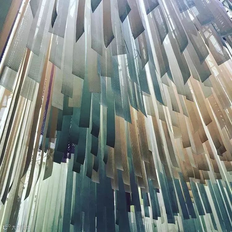 无论是坐在沙发雅座,还是吧台高椅,都可以将那一片属于彩色的庭院尽收眼底。天花板垂挂了的五千条轻薄丝绸,每处光影衬托九种不同素雅的色调,营造浪漫的氛围。微风掠过,便随风扬起,像极了某段文艺复兴时期的美好画面,令人不禁陷入了回忆。