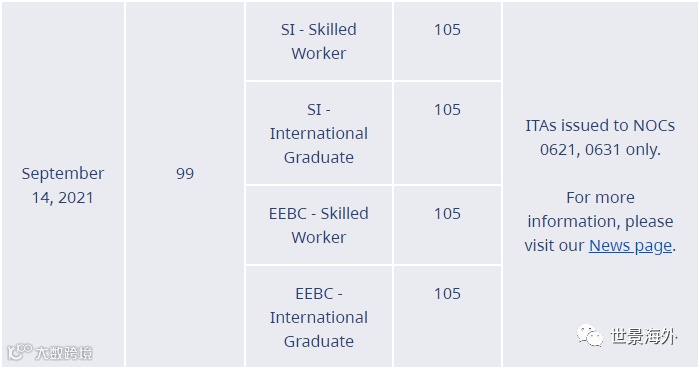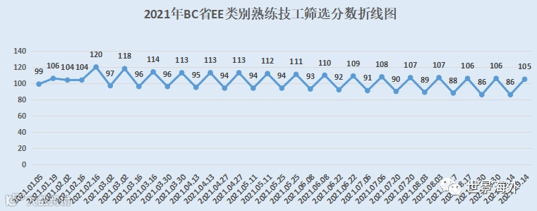 针对NOC0621、0631的岗位邀请了99人,其中BC省快速通道-技术工人类(EEBC)最低邀请分105分;BC省快速通道-留学生类(EEBC)最低邀请分105分。
