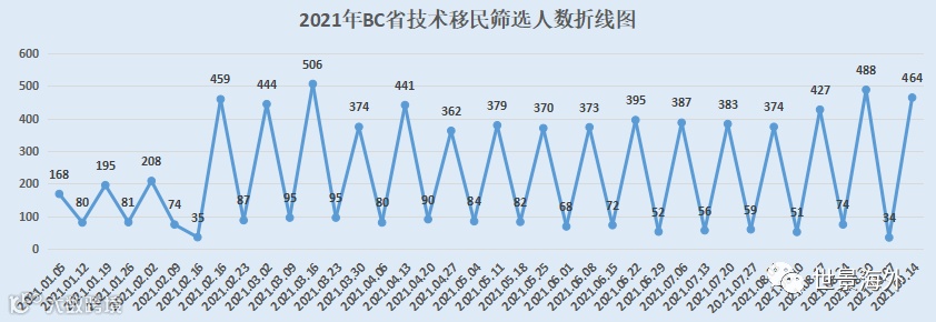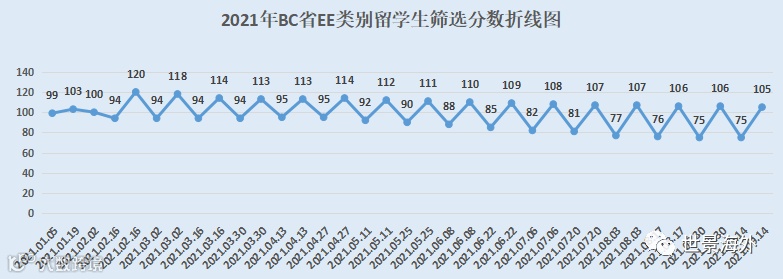 --BC省ExpressEntry留学生类邀请分数走势图--