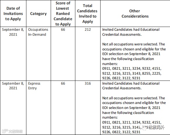 萨省技术移民无雇主类别发布了新的EOI筛选结果,此次邀请了萨省EE类别最低邀请分数66分,邀请人数316人;紧缺职业类别最低邀请分数66分,邀请人数212人,共邀请人数528人。