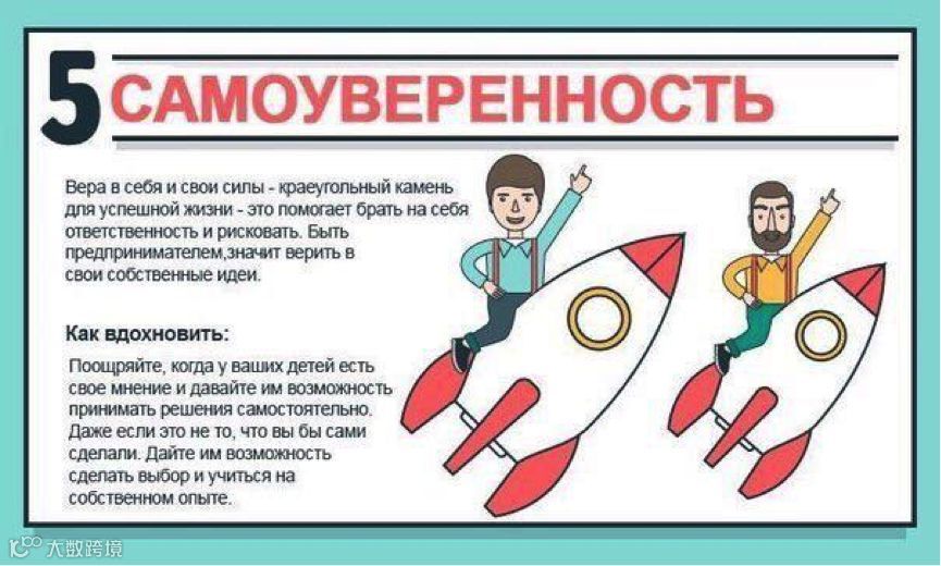 相信自己是成功的第一步。它能帮助孩子勇于承担责任勇于冒险。作为一名好的企业家,就是要相信自己的想法。