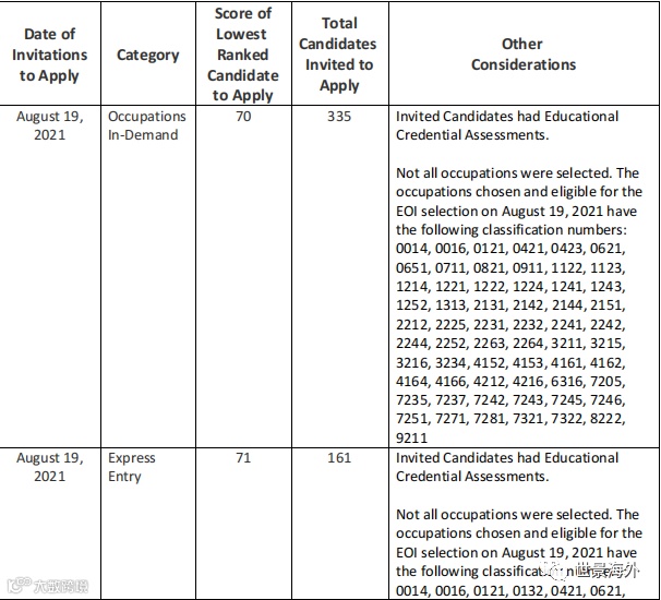 萨省技术移民无雇主类别发布了新的EOI筛选结果,此次邀请了萨省EE类别最低邀请分数71分,邀请人数161人;紧缺职业类别最低邀请分数70分,邀请人数335人,共邀请人数496人。