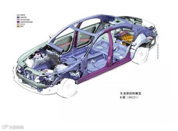 自2013 年投放市场的新款S 级222 车型开始,梅赛德斯-奔驰高档轿车车身的承重结构区域都大量采用了铸铝材料。