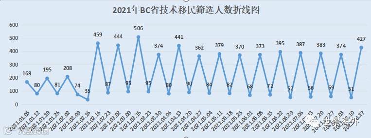 --BC省ExpressEntry留学生类邀请分数走势图--