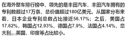 但是,随着国家大力发展新能源汽车行业,在电动车三大件:电机、电控、电池领域,专利数量及价值已迎头赶上,特别是在电池技术上,宁德时代在H01M(电池组)专利已经超过5000条,达到世界一流水平。相比燃油车,我国有着完整的三电的产业链,在技术上可以说跟传统汽车豪强处在同一起跑线上,在今后一定成为新能源领域的强国,实现汽车行业的“弯道超车”。
