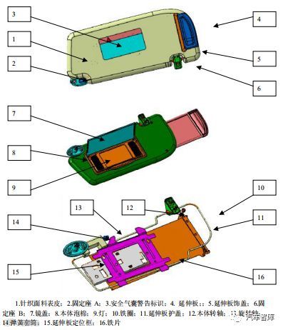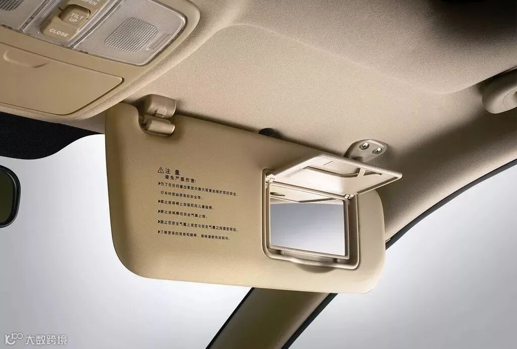 现在汽车遮阳板在副驾驶位置上都带化妆镜,部分中、高档车要求带照明灯、带镜盖;另外遮阳板上带地图袋、带延伸板、带安全警告标识、车库门开关等;