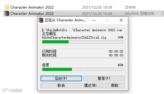 2.等待压缩包【Character Animator CC2022】解压完成。
