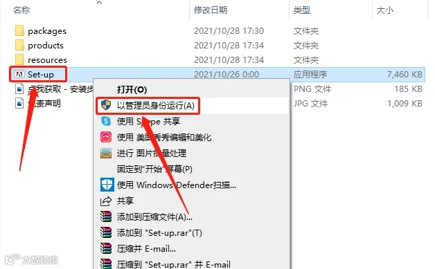 4.打开的文件夹中,鼠标右击【Set-up】安装程序,选择【以管理员身份运行】。