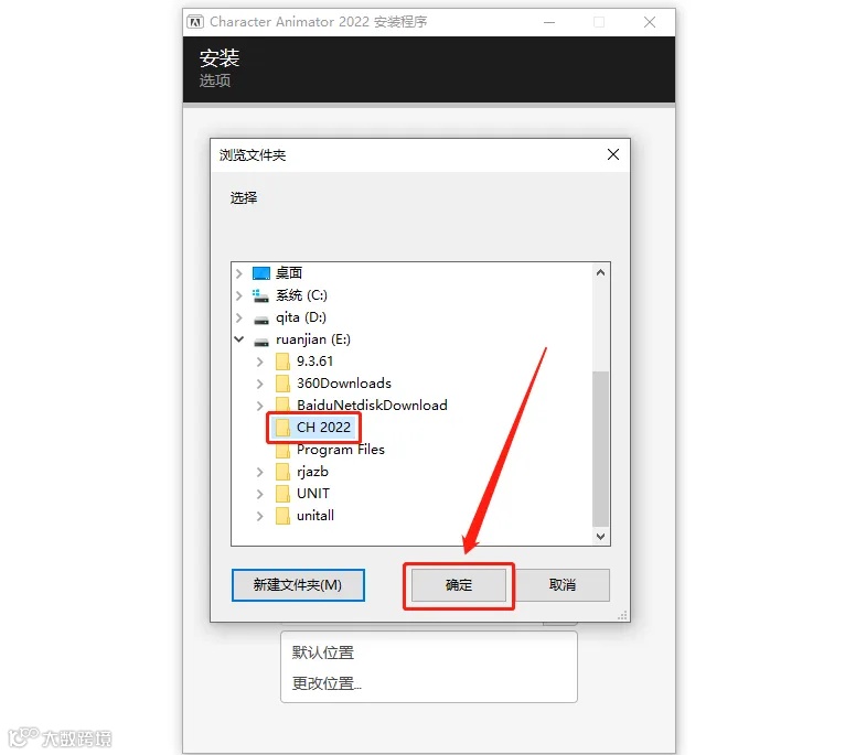 7.可在E盘创建一个新的文件夹,然后点击【确定】。