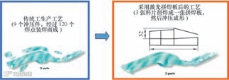激光拼焊板的特点(见图5)是焊接热输入高、无填料、无搭接、速度快、熔深大、变形小、热影响区小以及焊缝热影响区晶粒细化等。
