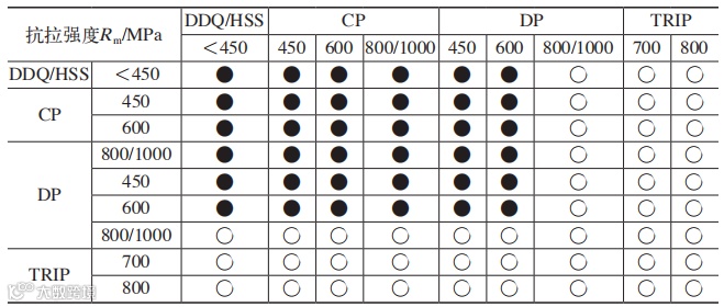 激光拼板焊(见图4)能够将不同强度等级、不同厚度、不同镀层的材料拼焊在一起(见表2),并进行整体冲压成形,可以优化选材,减少零件及模具,节约制造成本,同时还能提高零件整体刚度,提供更好的安全性能,是当前汽车轻量化的主要技术之一。
