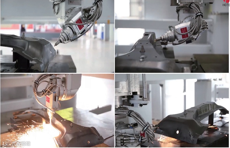 对于普通的平面结构,可以采用三维平面切割设备。对于结构复杂的设备,可以采用机器人激光切割;单机器人切割,切小圆的圆度难以保证,需要配置专业的三轴辅助切割;对于结构复杂,精度要求较高的零件,需要用到三维五轴激光切割设备。