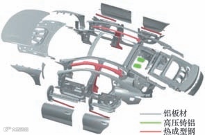 铝合金是目前轻量化的热门材料。研究表明,采用铝合金材料适当减轻汽车的质量可以把油耗降低37%,悬挂装置的负荷降低18%,振动强度降低5%。