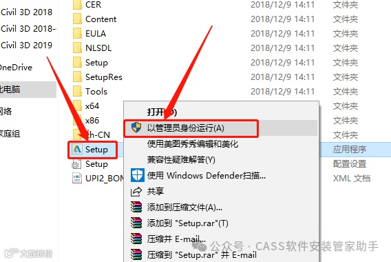 5.鼠标右击【setup】程序,选择【以管理员身份运行】。