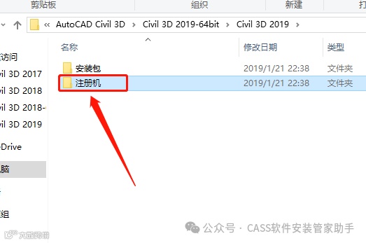 23.返回到【Civil 3D 2019】文件夹,打开【注册机】文件夹。