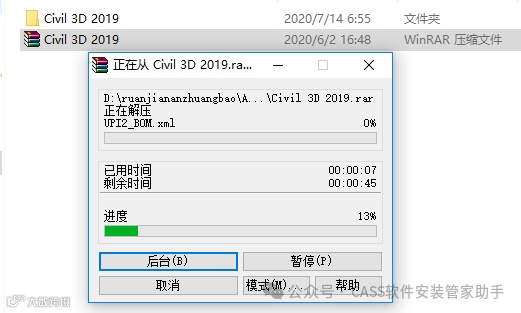 1.下载并选中【Civil 3D 2019】软件安装包,选择【解压到Civil 3D 2019】。