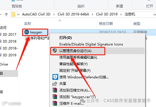 24.选中【keygen】,鼠标右击选择【以管理员身份运行】。