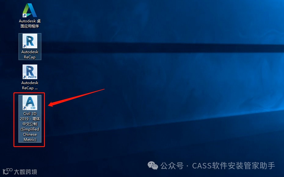 12.桌面上找到【Civil 3D 2019】软件图标,双击打开。