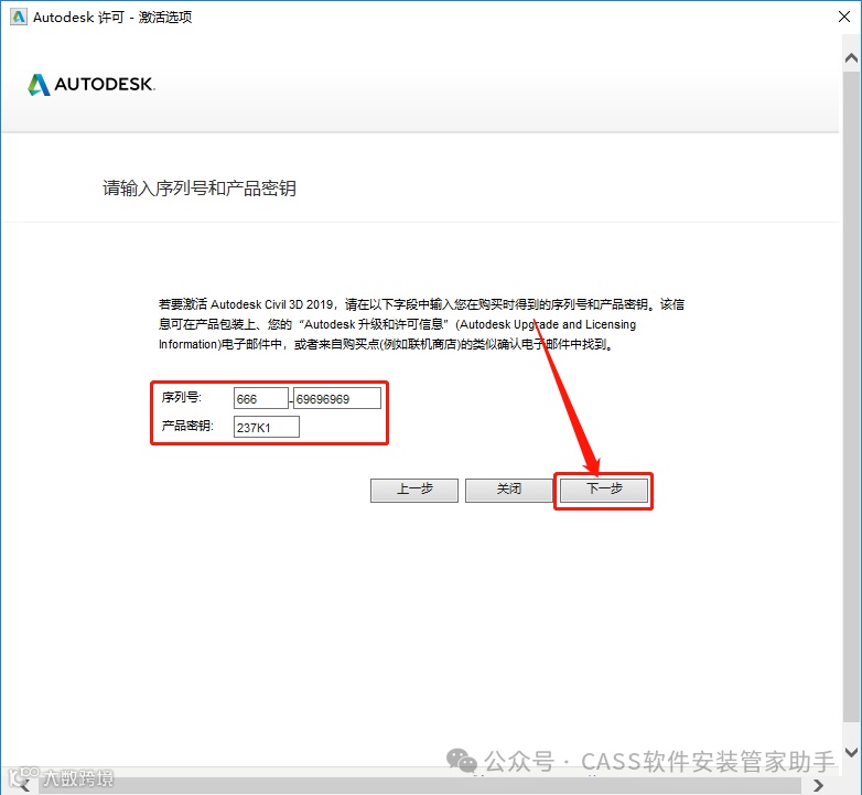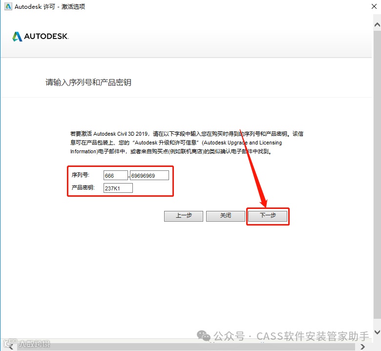 21.输入序列号:666-69696969,产品密钥:237K1,最后点击【下一步】。