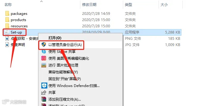 4.打开的文件夹中,鼠标右击【Set-up】程序,选择【以管理员身份运行】。