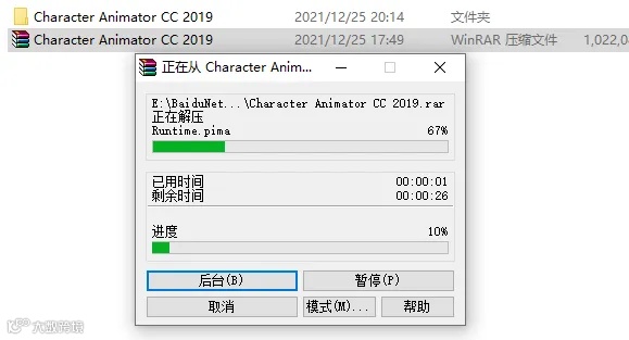 2.等待【Character Animator CC2019】压缩包解压完成。