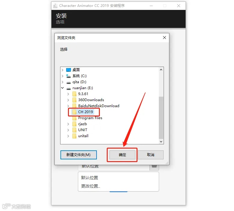 7.可在E盘里创建一个新的文件夹,点击【确定】。