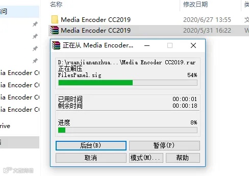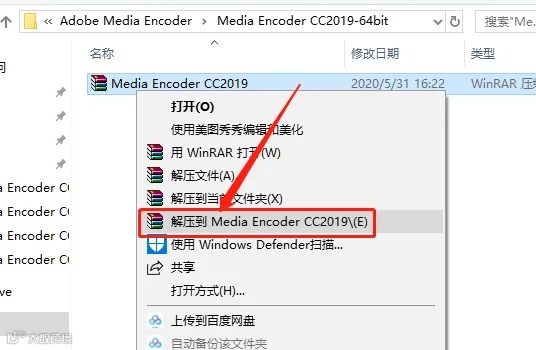 1.下载【ME CC2019】软件安装包,鼠标右击压缩包选择【解压到Media Encoder CC2019】。