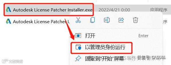 13.以管理员身份运行“Autodesk License Patcher Installer”。