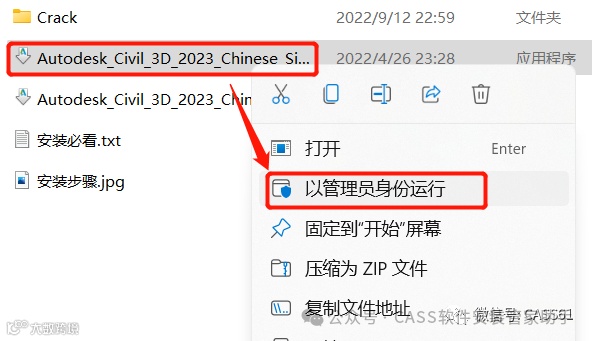 3.找到Autodesk_Civil_3D_2023_Chinese------.sfx以管理员身份运行。
