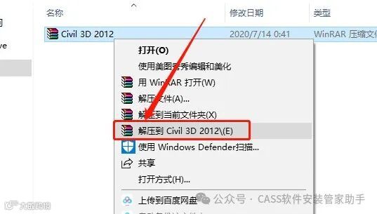 1.下载并选中【Civil 3D 2012】软件安装包,鼠标右击选择【解压到Civil 3D 2012】。